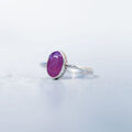 優しいワインレッド色のルビーをシンプルな飽きのこないシルバーリングに仕立てました