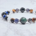 こちらの7種類の天然石を組み合わせ、落ち着いた色合いのブレスレットに仕上げました。
