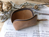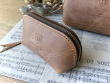 ・手のひらサイズがかわいいラウンド型のミニポーチです。イタリアの上質なオイルレザー(アラスカ)を使用しています。肉厚な革ですが、使い込むほどに柔らかく変わっていきます。