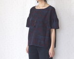 ドロップショルダーの切り替え部分にひかえめにギャザーを入れ、ふんわり小さなぼんぼり袖に仕上げました。