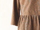 インドの西側にあるラジャスタン州の砂漠の町で作られた木版更紗の生地を使って、切り替え下のギャザーたっぷりのカシュクールワンピースを作りました。長袖で真夏と真冬以外着られそうです。