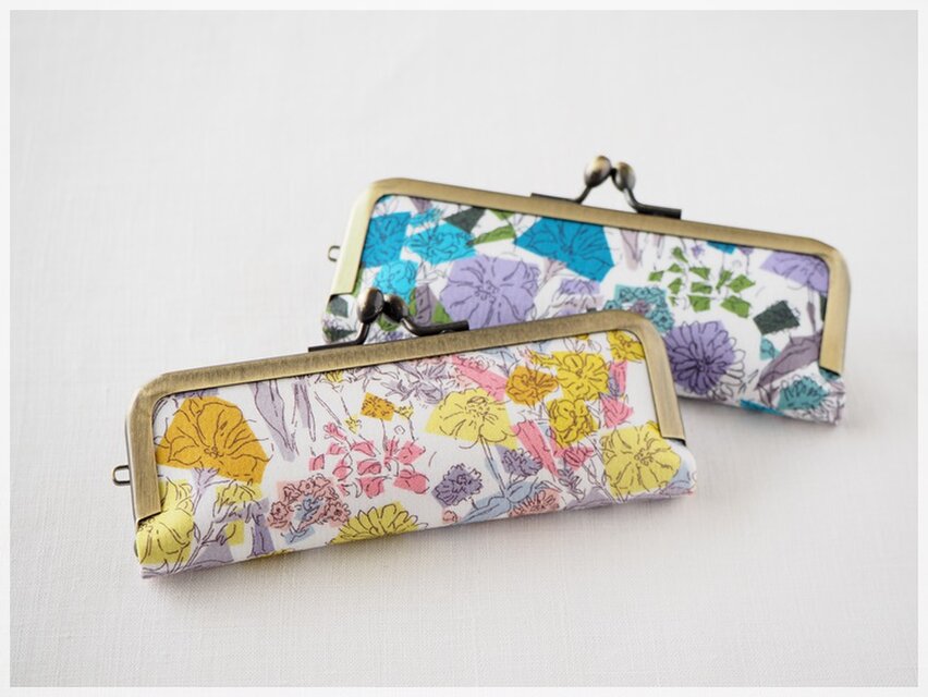 ■リバティプリントのがま口印鑑ケース 【Lサイズ】 / コンフェッティ・フラワーズ■ hanko case (lbt-cff)