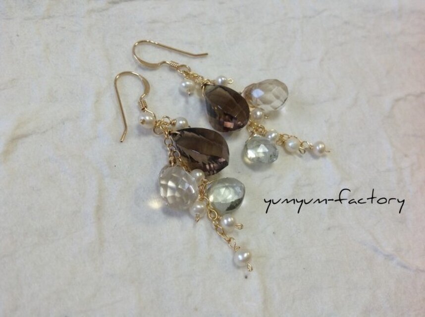 透明感のあるツイストカットのスモーキークォーツとシャンパンカラークォーツ、