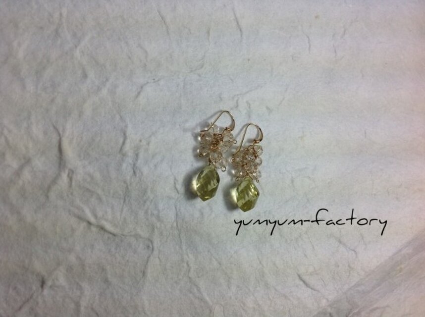 宝石質のツイストカットのレモンクォーツとシャンパンカラークォーツを合わせました。