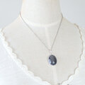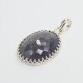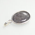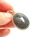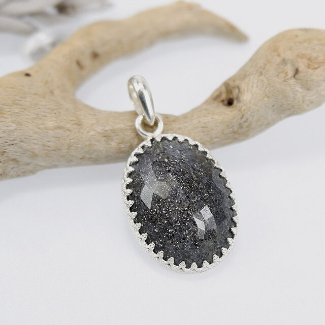 光に当たるとインクルージョンが眩く輝くブラックアベンチュリンを飾り枠のシンプルなペンダントに仕上げました。