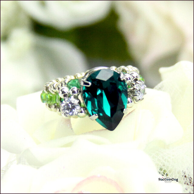 ビーズ,リング,コスチュームジュエリー,ビーズアクセサリー,ビーズリング,ビーズ指輪,ジルコニア,スワロフスキー,エメラルド