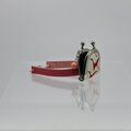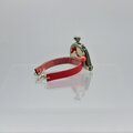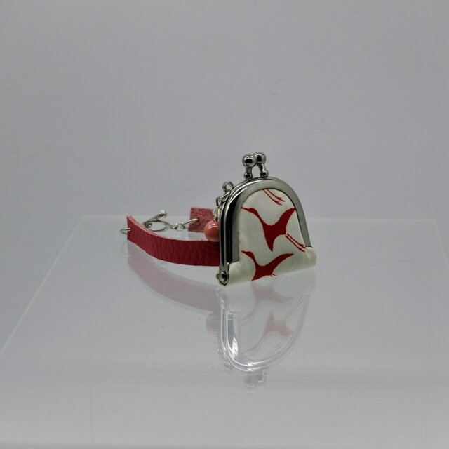 白地に赤い鶴が飛んでいる柄の着物で小さいがま口を作りブレスレットにしてみました。