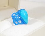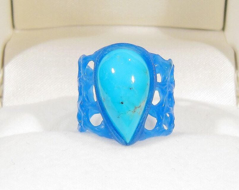 大粒で美しいブルーのターコイズ(トルコ石)をふくりん留めした指輪です。