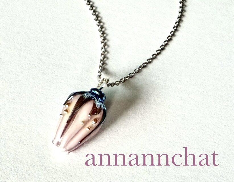 【 ヨーロッパ製 薔薇(バラ)ランプワーク ネックレス】ばら ウクライナ ペールローズ 紫