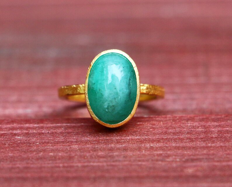 素材…トップは天然エメラルド バンド…スターリングシルバー925(ゴールドプレーテッド) 手作り