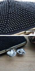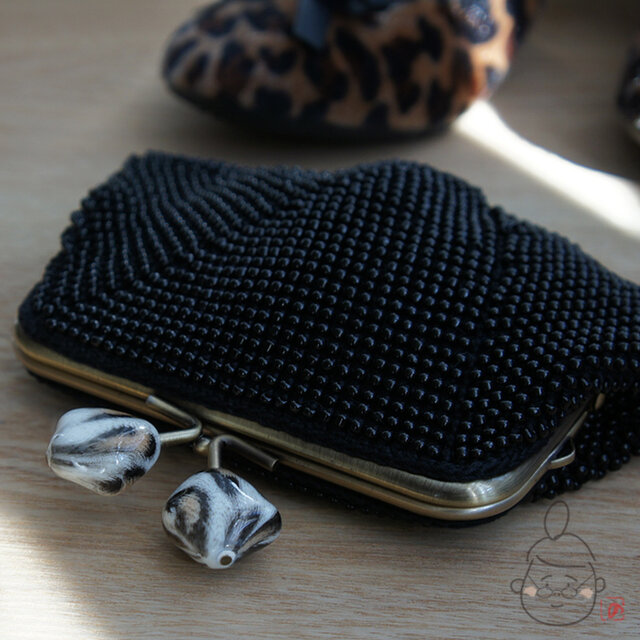 ばあば作☆☆さらに大きめ・ガラスビーズのがま口(noir chic・1377)