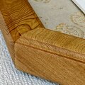 この額縁は深さは浅いですがボックス型の額縁です。付属のベニヤボードにお作品を貼り込んでいただきそれを両面テープでマットに固定して頂くという型です。