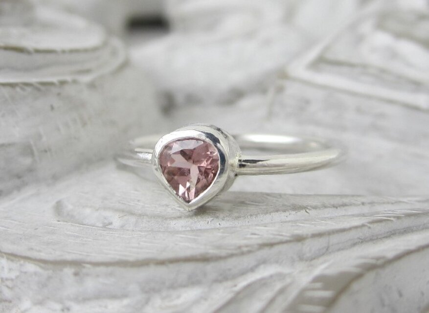 今回は、可憐な淡いピンク色が愛らしいマロン型のトルマリンをシンプルなリングにお仕立てしました。