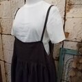 胸当ての部分が小さく、肩ひもが細いので、大人っぽく着れるジャンパースカートです。
