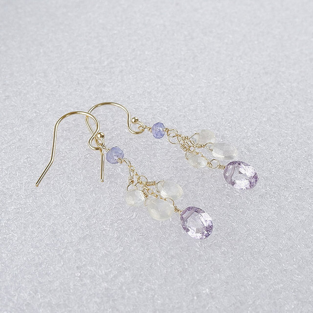 爽やかな色合いのタンザナイトを組み合わせて華奢な印象のピアスに仕上げました。