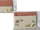 生成りのコットンリネンにお花の刺繍を施し、しっかりめのテラコッタ色綿素材と組み合わせました。