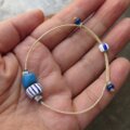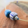 紐の先端には、青いシードビーズ。
