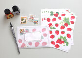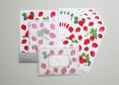 透明水彩で描いたいちごのレターセットです。