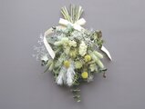 白やグリーンの花材や、やわらかい雰囲気の花材を使って