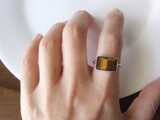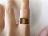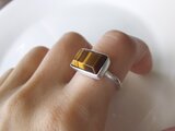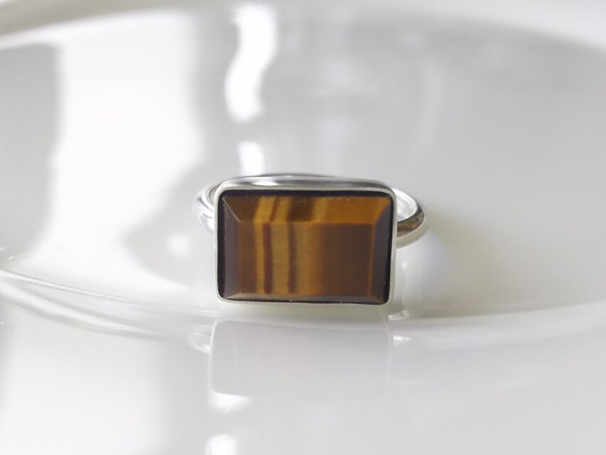 りりしくぱっきりとしたスクエアな形が美しい、タイガーアイのリングです。