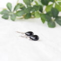 艶やかなブラックのモリオンに小粒のシルバー色の淡水パールを添えたシンプルでシックな雰囲気のピアスです。