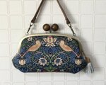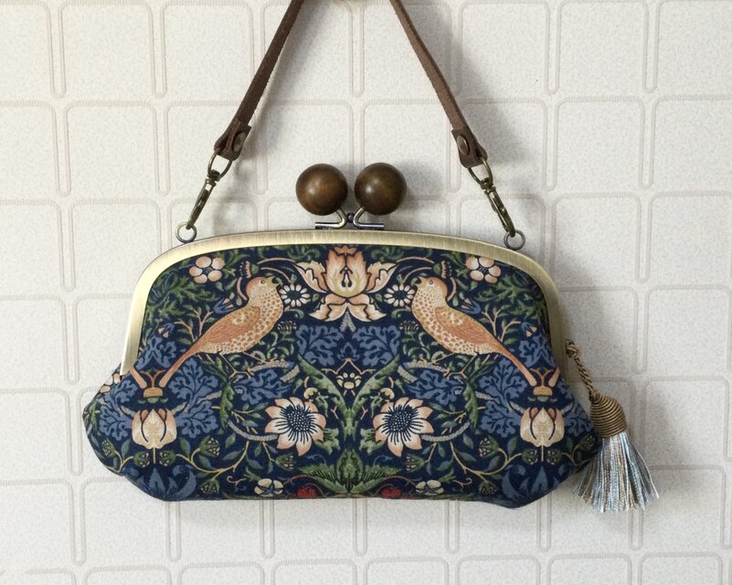 ウイリアムモリス いちご泥棒で作りました木玉のがま口長財布バッグです
