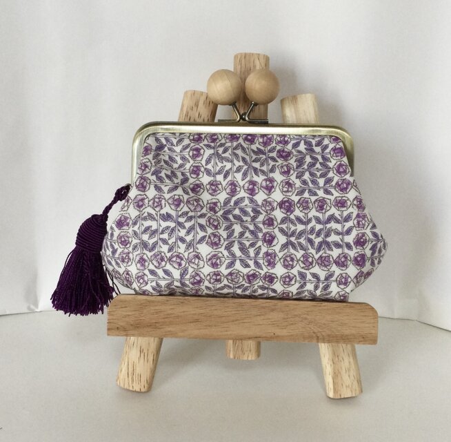 リバティ スリーピングローズ作りました木玉親子がま口ミニ財布です