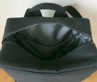 内ポケットは背中側に一面に大きなオープンポケットがあります。クッションの入ったポケットなのでタブレット端末なども入れられます。