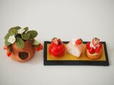 ミニチュアのいちごのポッドとイチゴスイーツのセットです。