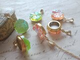 全てカンをお付けしておりますので、お手持ちのチェーンやリボン、ピンなどを通していただけますと