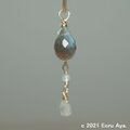 メインの宝石質ラブラドライトはドロップのプレーンなので、シンプルに一粒下げました。