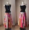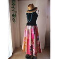 深い赤色系ギャザーマキシとっても素敵。赤系マルチカラーティアードマキシと見比べどっちもも可愛い~可愛い~と連呼、うっとりしています。お作りがとても丁寧で美しく、パーツ生地の並びも最も濃い色(黒地に花柄等)が良い間隔で分散配置されていて素晴らしい。平太ゴムの具合もちょうど良い自然な乗っかり感。年配者なのですがおすすめの作品です。迷われている方はぜひご注文を、と思います。 ありがとうございました!
