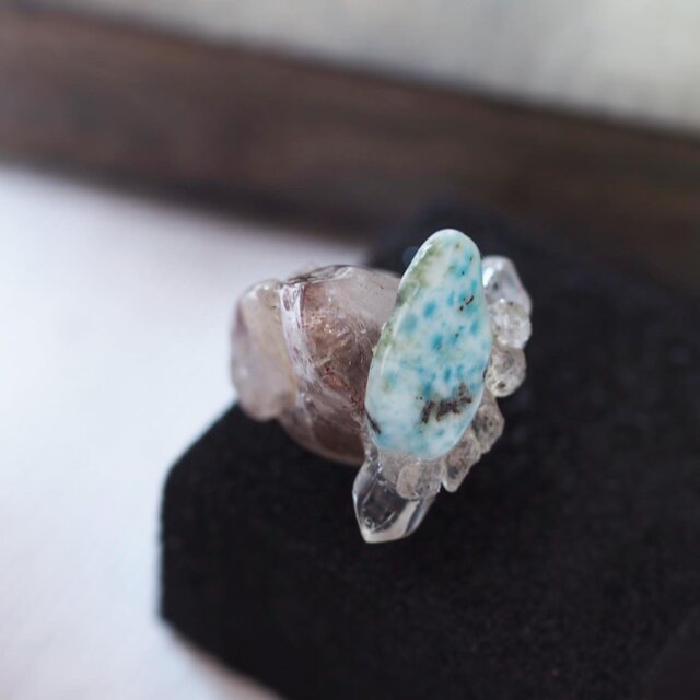 スーパーセブン・ラリマー ・水晶などの天然石を使用した1点もののピンブローチです。