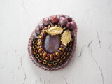 ドラゴンブレスという名前が付いた加工が施されたチェコガラスのカボションをメインにシックなブローチに仕上げました。