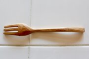 木のフォークはお皿にあたってもカチャカチャと音も立たず、