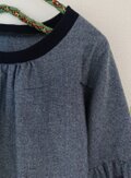 身頃と袖はダンガリーコットン100%、襟ぐりと袖ぐりはニットを使い、異素材を組み合わせることによりスポーティーな可愛らしさが引き出されています。