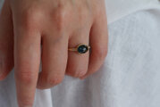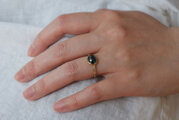 光や角度によって色が変わって見えて楽しくも美しい指輪です。サイドの小さなダイヤもキラキラしてかわいいです。嬉しくて毎日つけています。ありがとうございました。