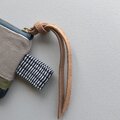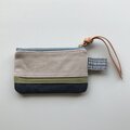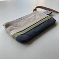 柔らかなグレー×くすんだ抹茶系・くすみ紺色3色のコットン8号帆布生地で小さなポーチを制作致しました