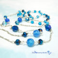 そんなホタル玉をメインに、艶やかな天然石ブルーアゲートや、海を思わせるブルー、夜空のようなメタリックなブルーなど、様々なブルーのビーズを合わせてクールな印象のラリエットに。