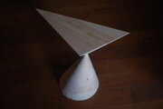 天板は3角錐、脚は円錐の組み合わせです。ボルトで固定しており、取り外しはできません。