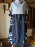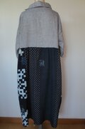 古布リメイク リネンと古布久留米絣のロールカラーワンピース オリジナル 着物リメイク ハンドメイド