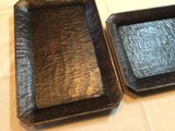 タモを削ったトレイ 存在感があり 木の ぬくもりが とっても素敵! サクラの カッティングボードも 野性味があり キャンプに 行ったとき そのまま テーブルで 切り分けるのに 最高!
