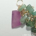 このルビーを留めたワイヤーの中に、エメラルドのスクエアを下げました。