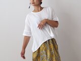 サイドが下がった裾のニュアンスが、パンツスタイルと良く合い、重宝する一着です。ふんわり柔らかく、着心地良い一枚です。