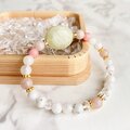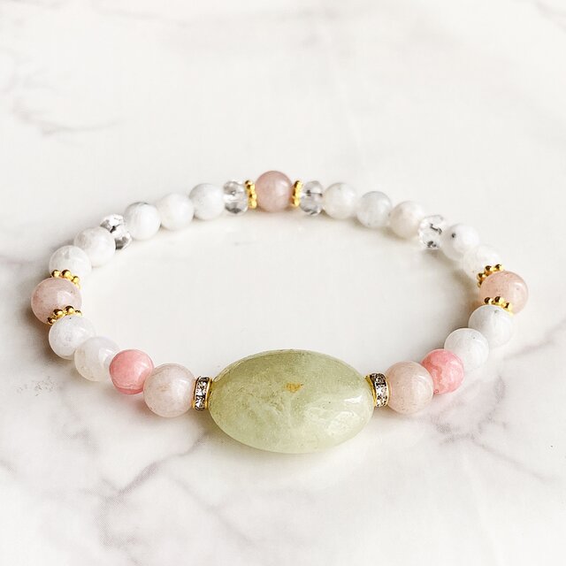 こちらのパワーストーンを組み合わせ、清楚で女性らしいデザインのブレスレットに仕上げました。