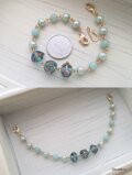 涼し気なイメージを壊さないよう、クールな水色のシュリンクパールと天然石アマゾナイトを合わせました。