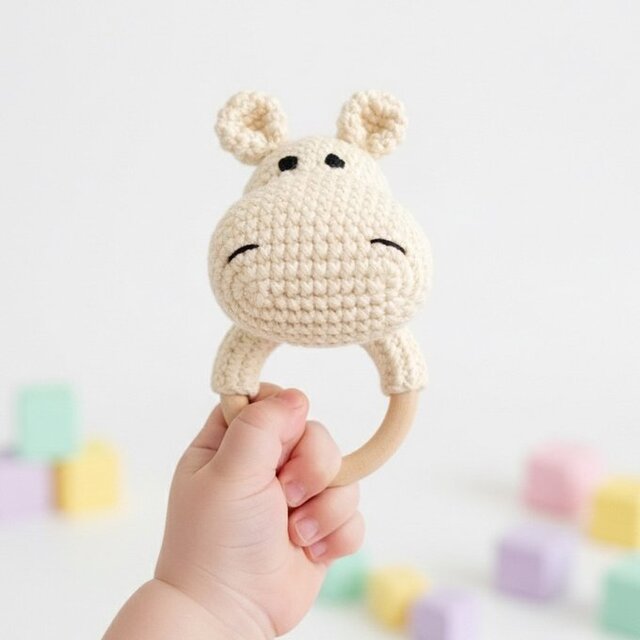 おもちゃ カバ ガラガラ ラトル 0歳 男の子 女の子 編みぐるみ 出産祝い