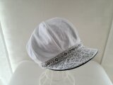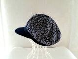 魅せる帽子☆【母の日限定価格】ふんわり♪小花プリントとレースのリバーシブルキャスケット~ネイビー&ホワイト