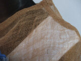 幅広の蚊帳でしたので身頃を一巾で裁つことができました。すべて手縫いで仕上げました。衿周り、袖周り、裾周りは2本ステッチを入れました。