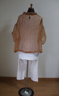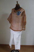 早く見つけられて即決してお迎えできた素敵な美しいチュニックです 藤娘が大きくどど~んと藍染めの綺麗な紺色が映えてます 後ろ側にも素敵に染められた藍の模様が加えられて手の込んだ作品ですね また柿渋が丁度よい感じで染ってくれています 素晴らしい一点物ありがとうございました